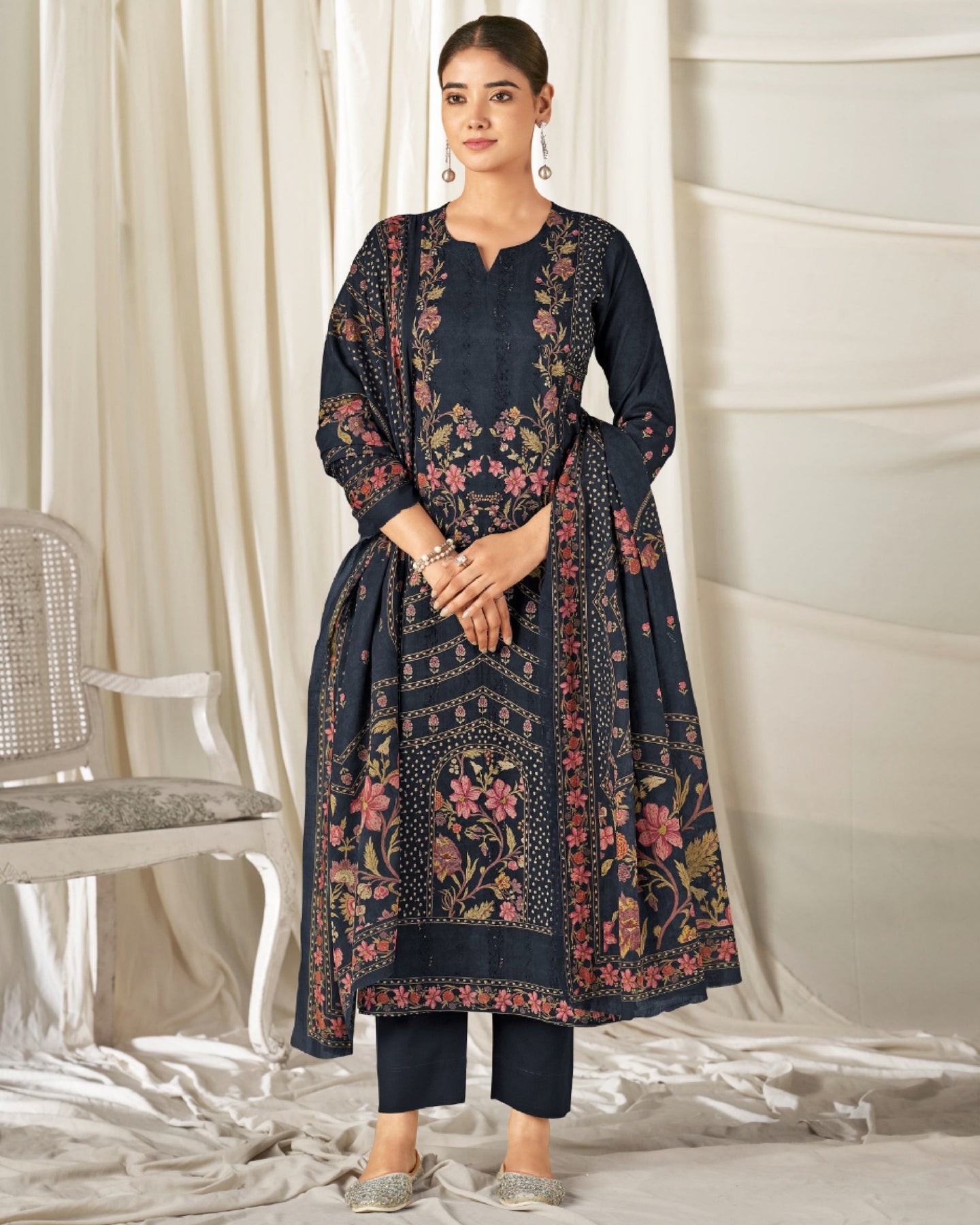 43991 - Printed Cotton Embroidered Suit With Cotton Duppatta