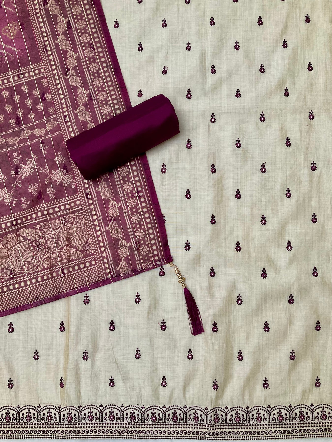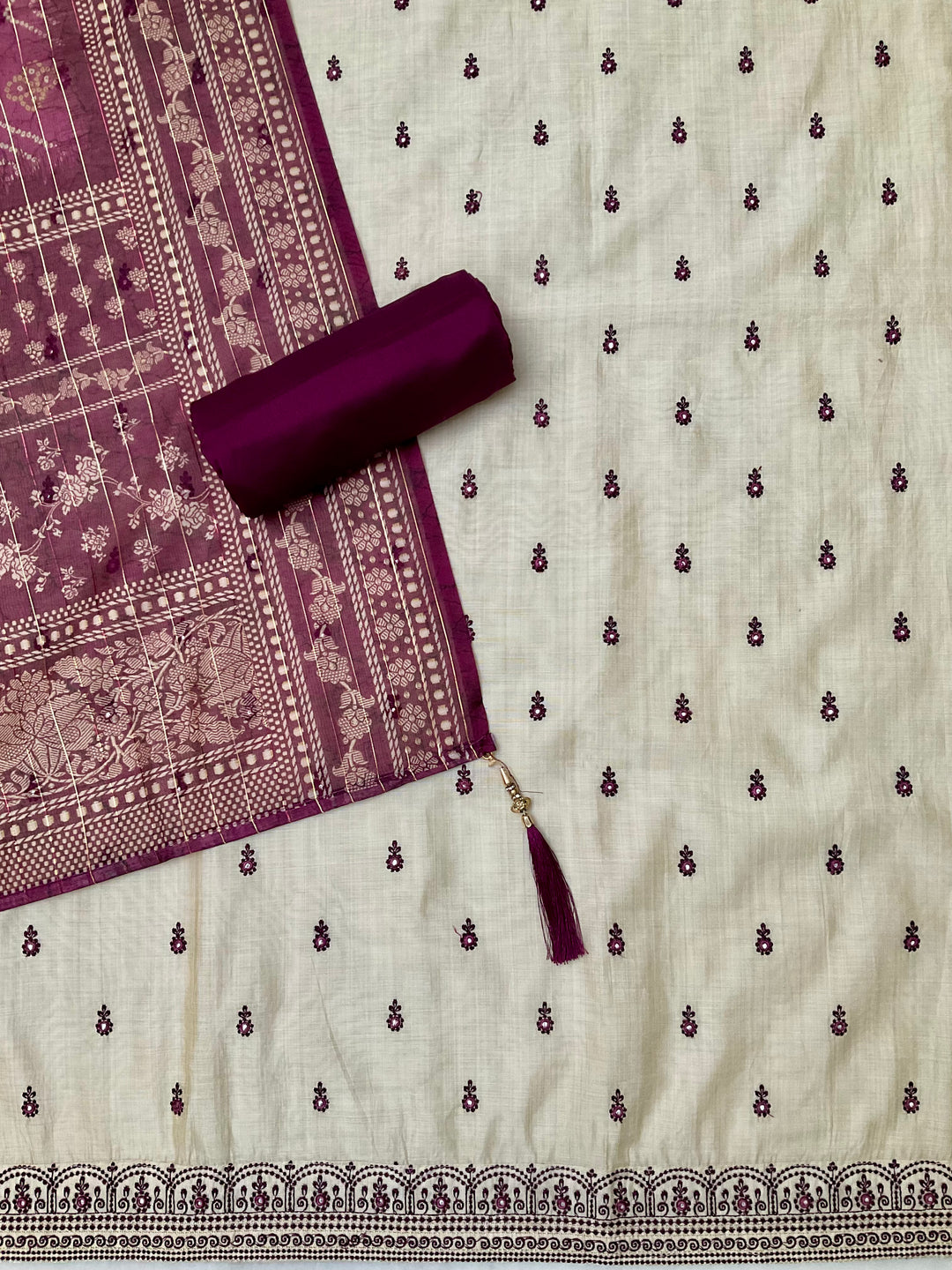 Chanderi Silk Embroidered Unstiched Suit -46921