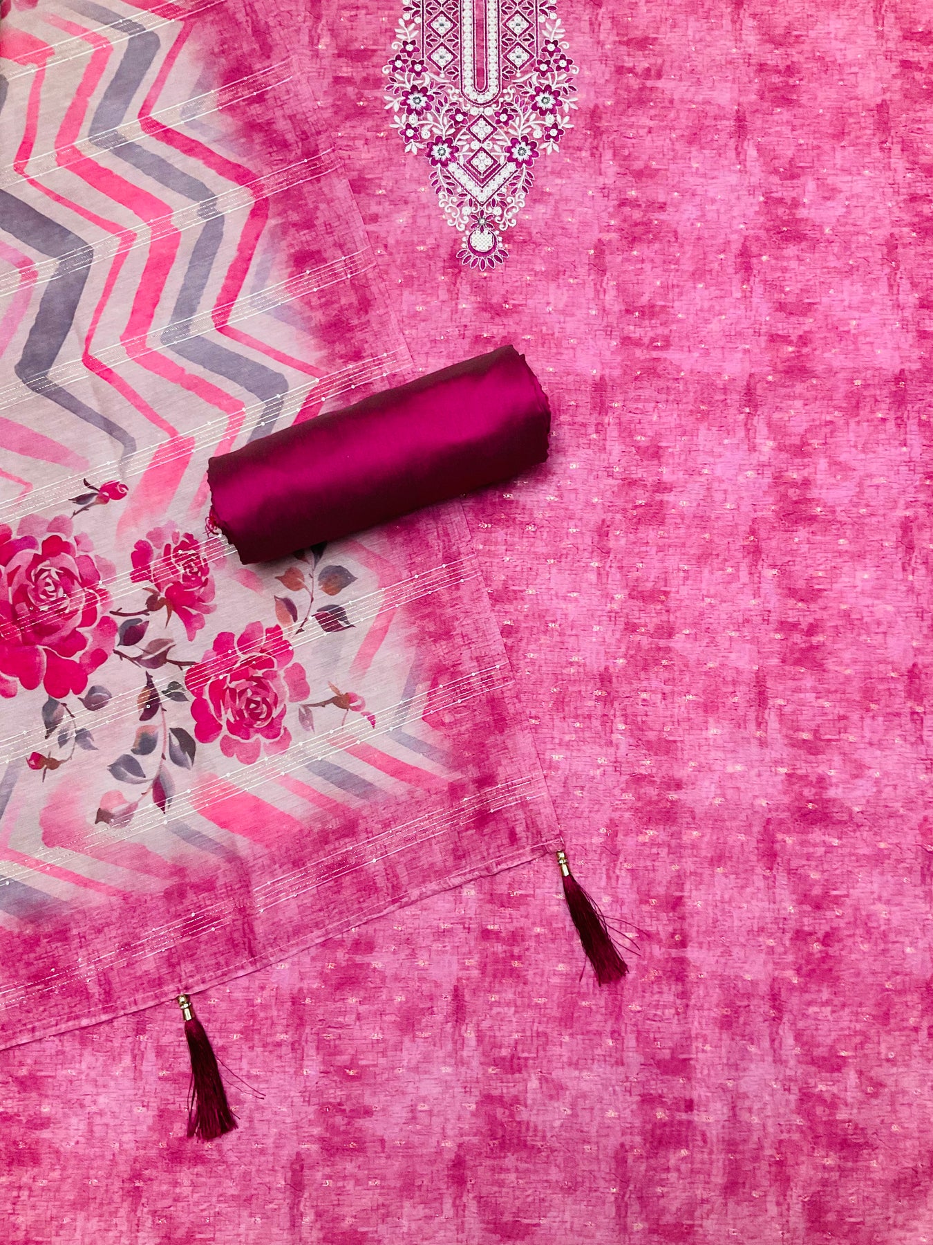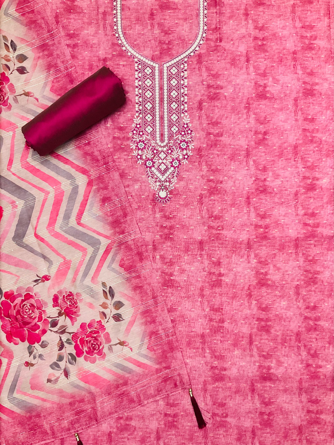 Elevate your ethnic wardrobe with this exquisite unstitched salwar suit set. Crafted with premium-quality, this set offers a beautiful blend of traditional elegance and modern charm.