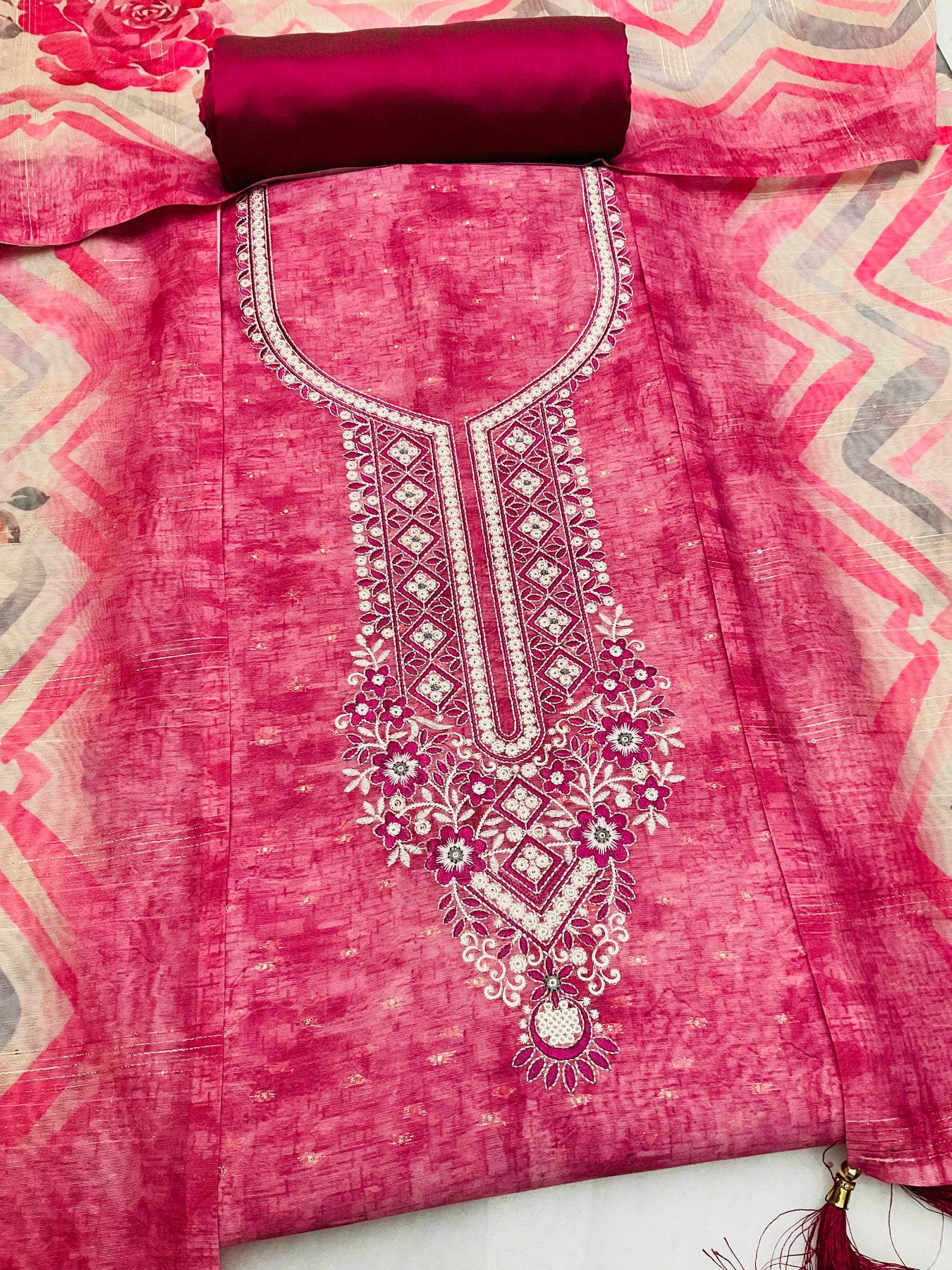 Chanderi Silk Embroidered Unstiched Suit -46922