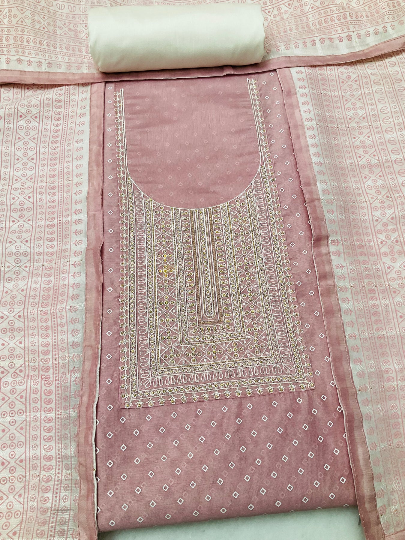 Chanderi Silk Embroidered Unstiched Suit -46938