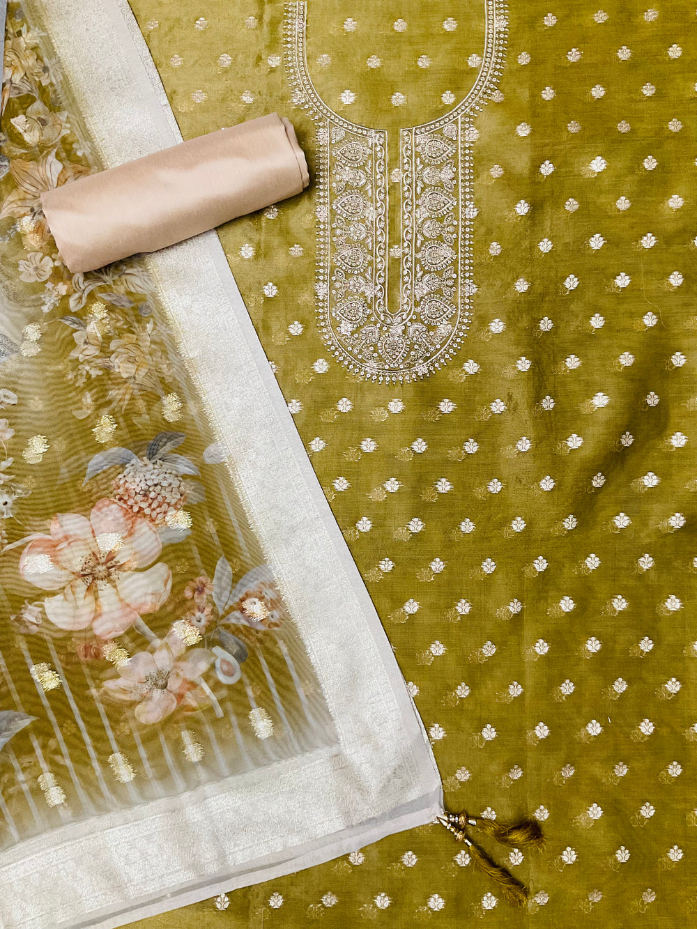 Woven Chanderi Unstitched Salwar Suit - 45342