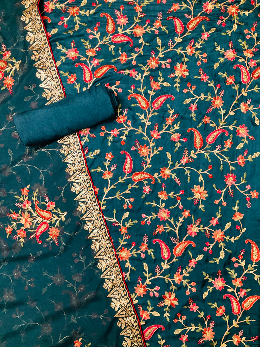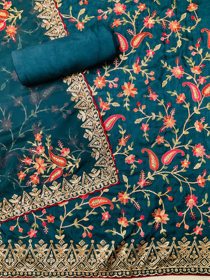 Uppada Silk Embroidered Unstitched Salwar Suit - 43555