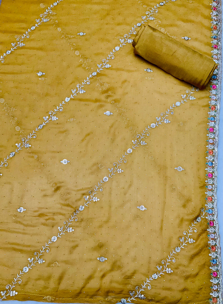 Tissue Embroidered Unstitched Salwar Suit - 45345