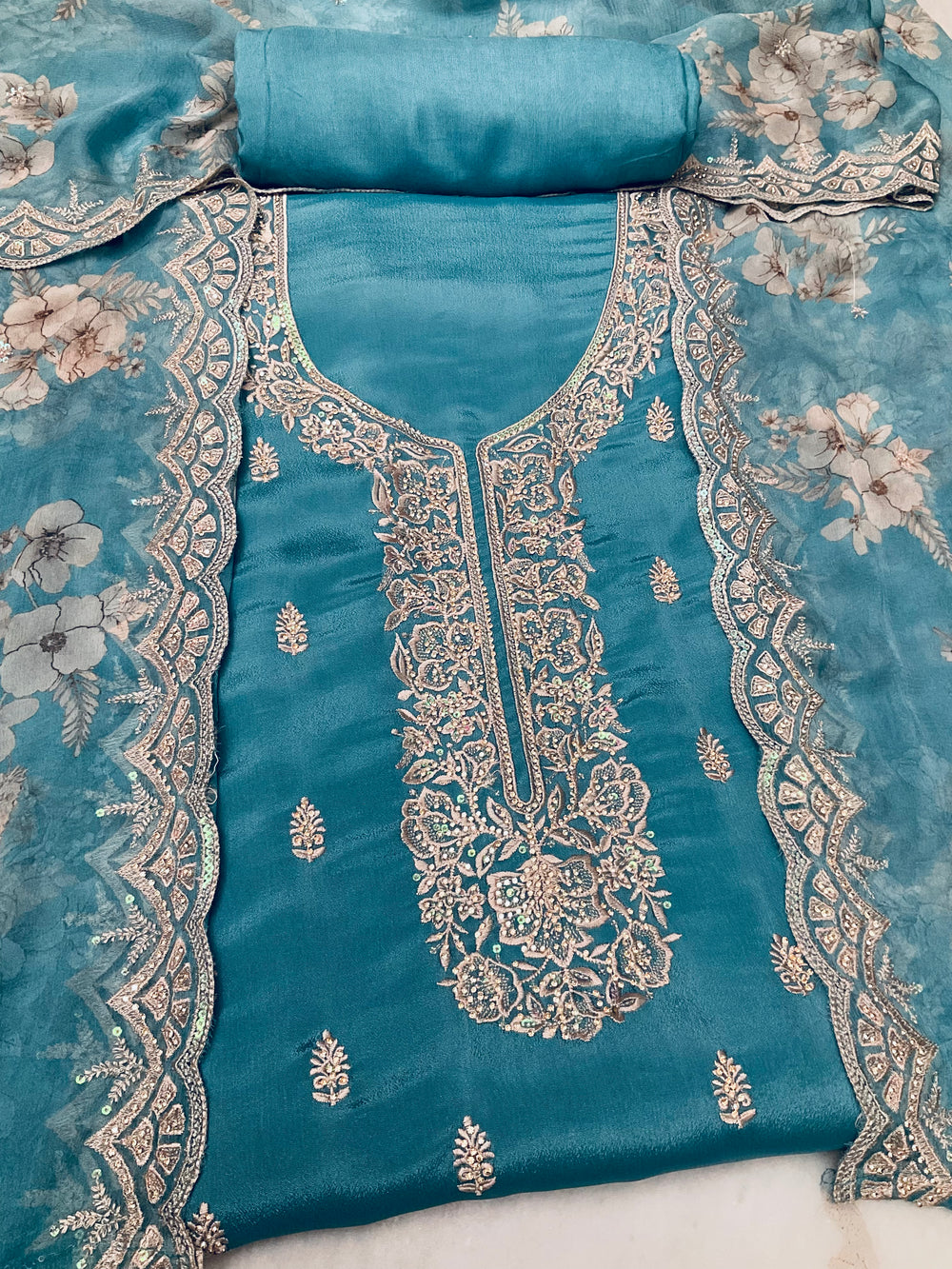 Top Fabric: Chinnon With Embroidery. Length 2.50 Mts