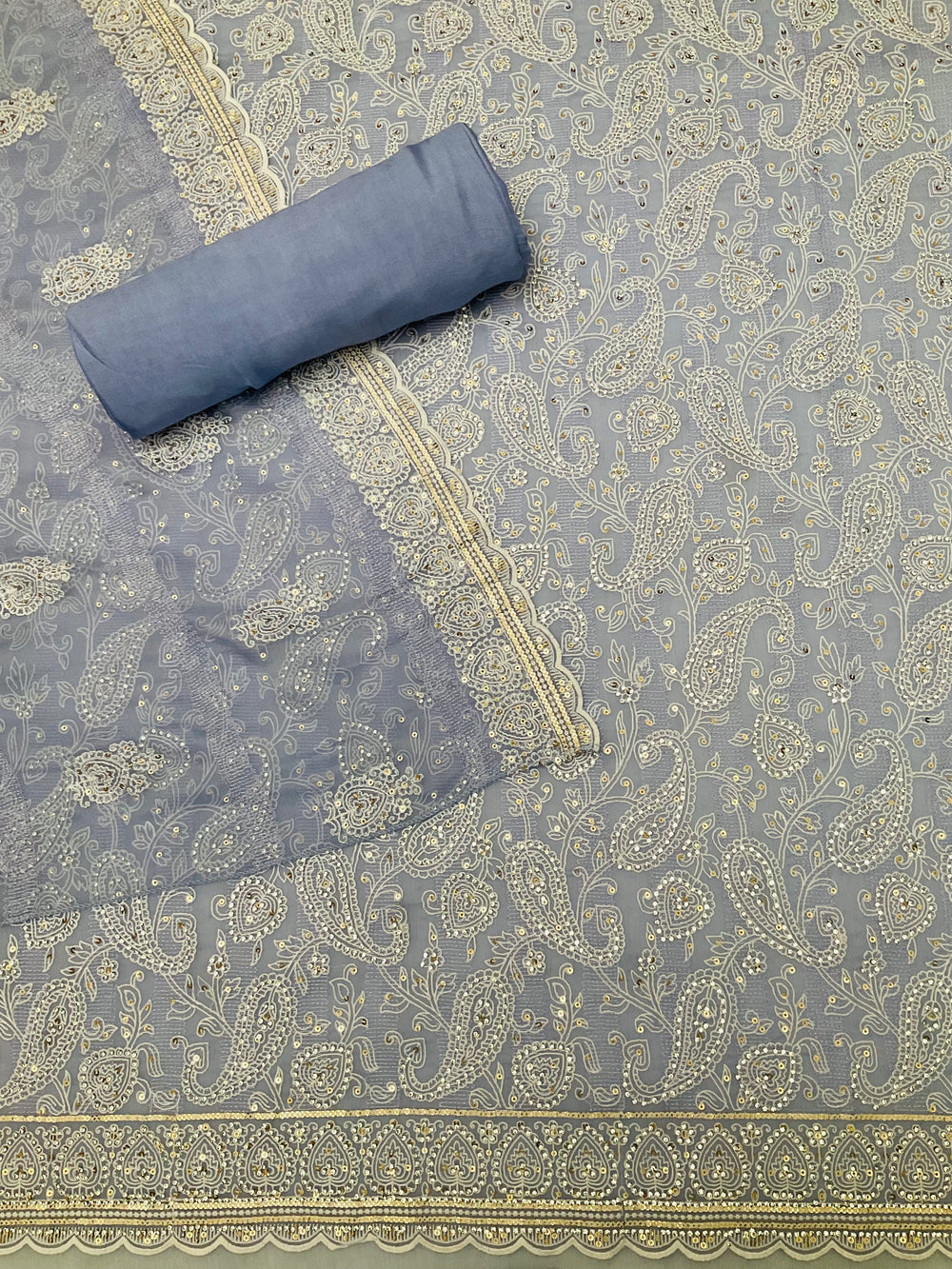 Chiffon Embroidered Unstitched Salwar Suit - 45351