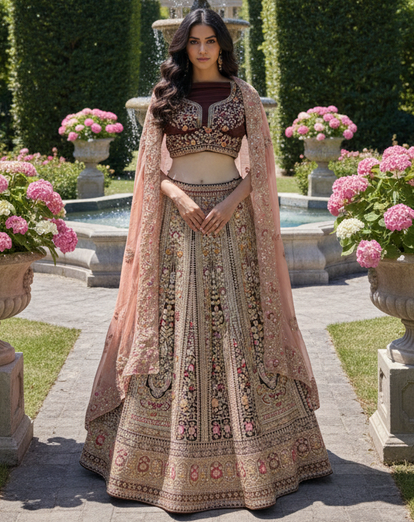 Riwaayat – Brown Net Lehenga with Zari & Stone Work | Fazals