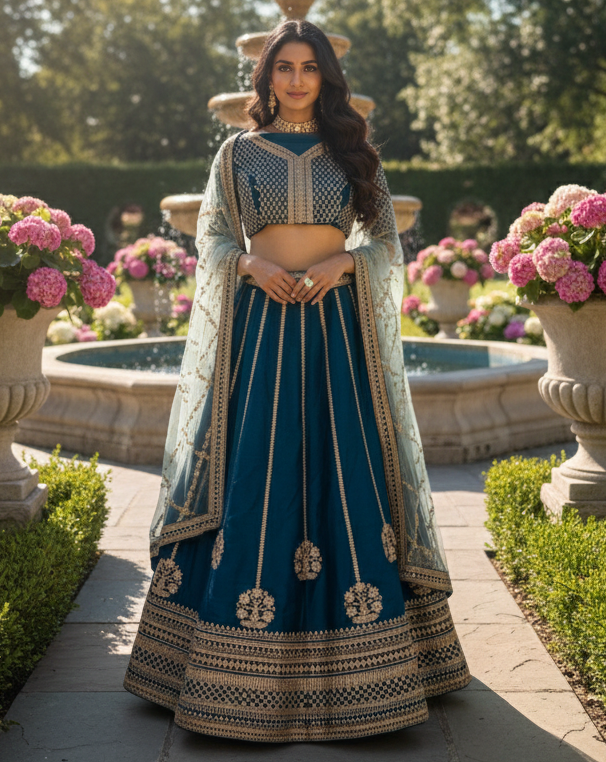 Neelaya – Royal Blue Silk Lehenga with Thread & Sequins Embroidery, Embroidered Blouse & Net Dupatta | Fazals