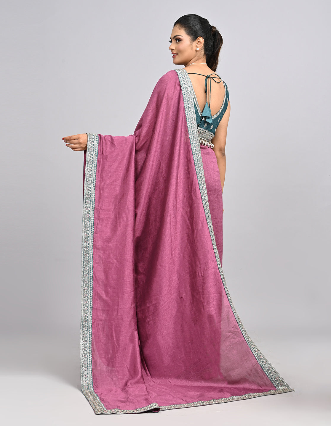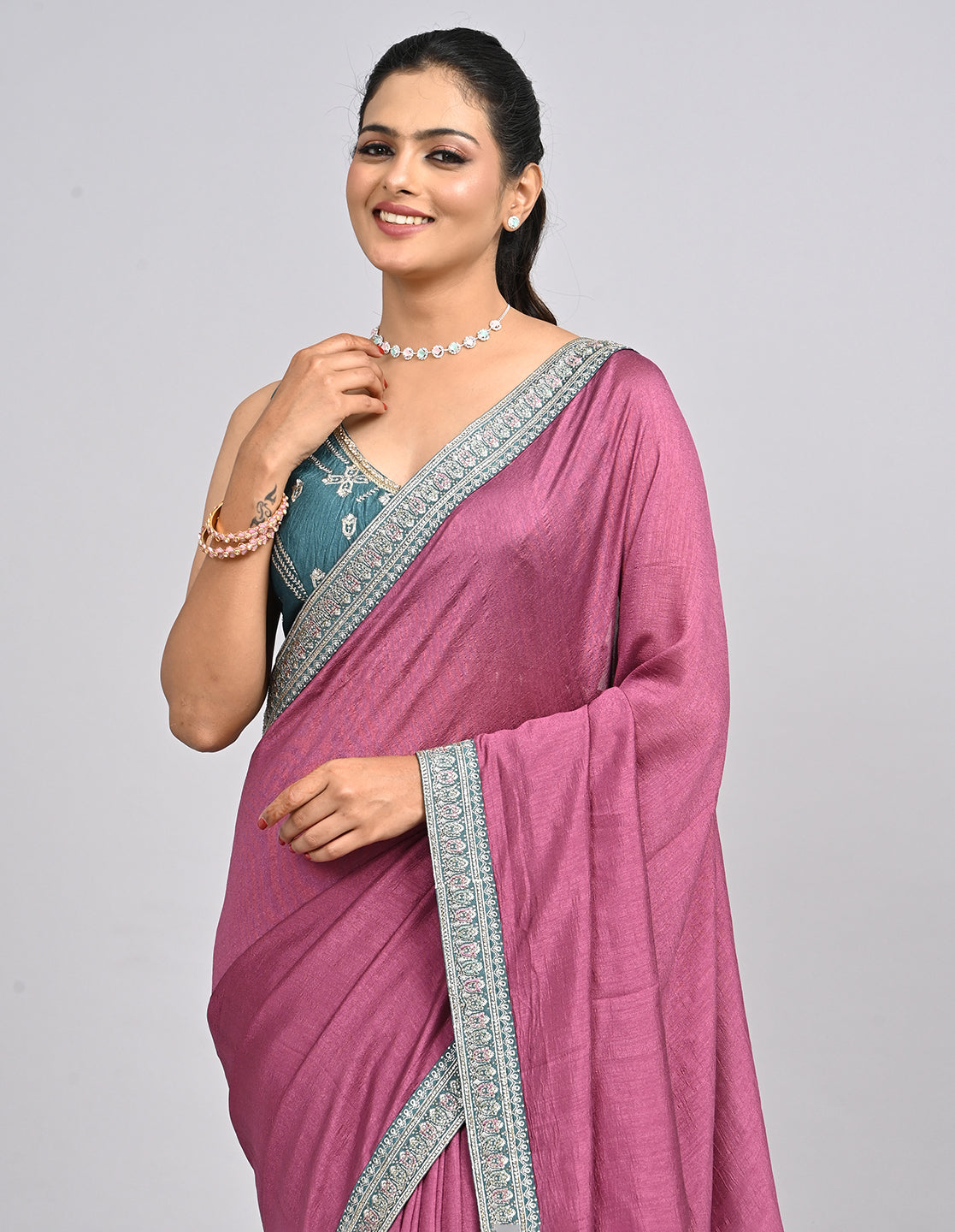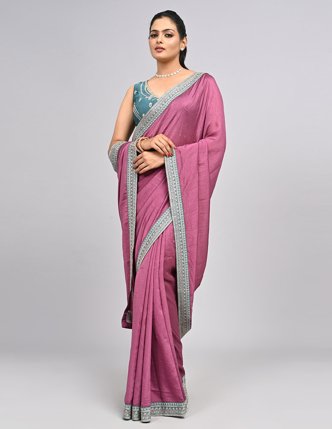 Lavina – Lavender Silk Saree with Zari Border & Self-Coloured Blouse | Fazals
