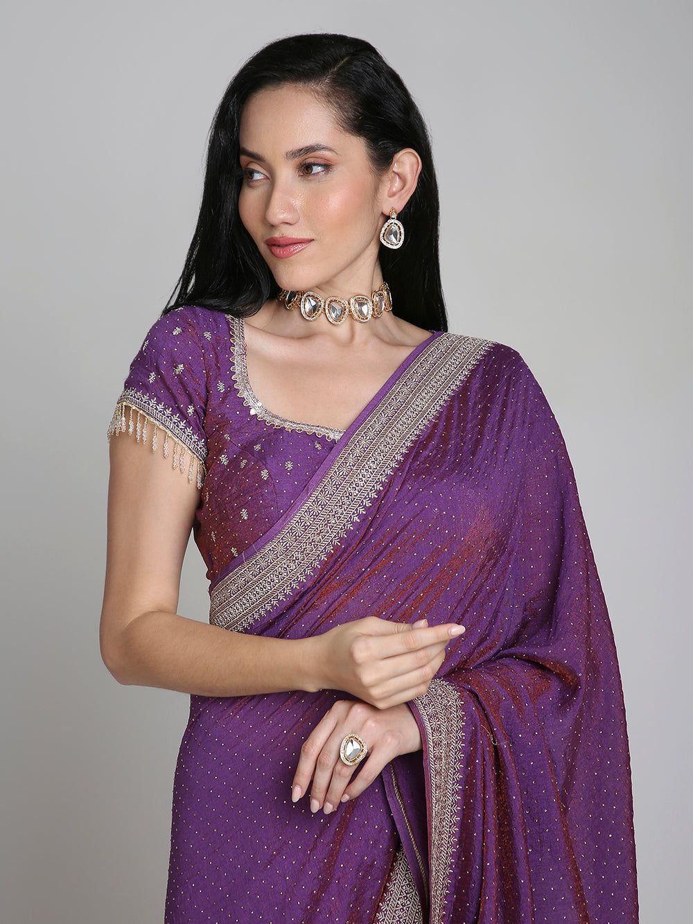 Saanvi ā Purple Silk Saree with Gold Swarovski Border | Fazals