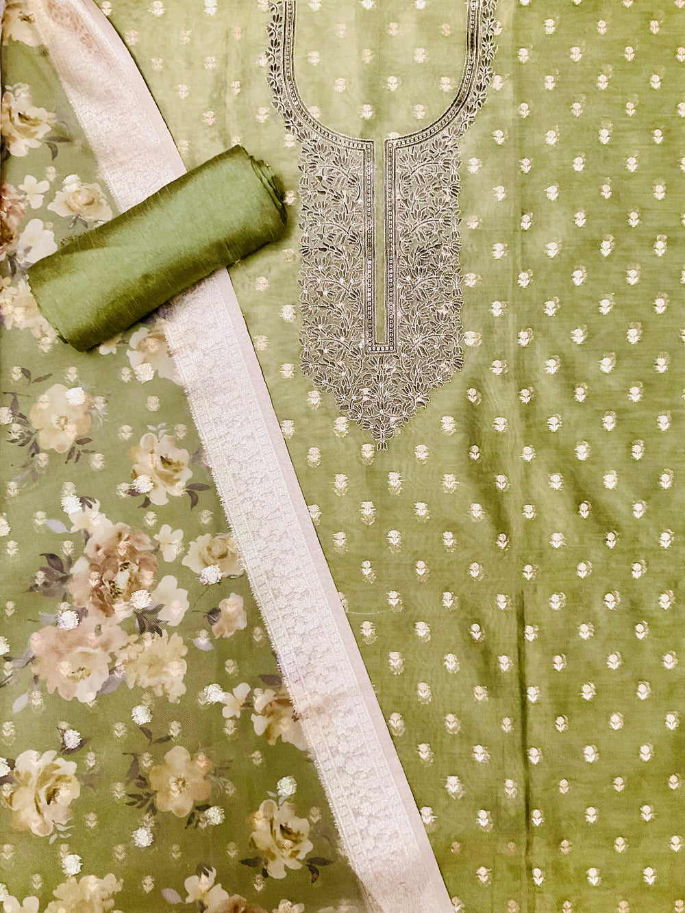 Woven Chanderi Embroidered Unstitched Suit - 45332