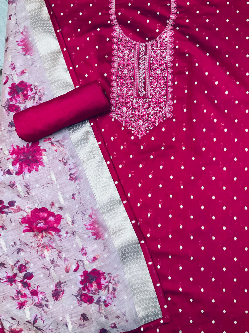 • Top Fabric Chanderi With Embroidery. Length 2.50 Mts