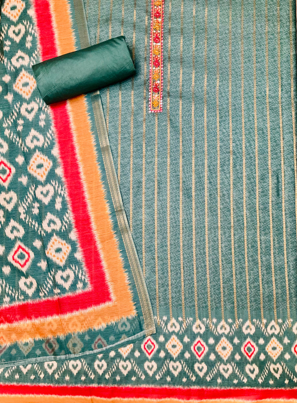 Woven Chanderi Embroidered Unstitched Salwar Suit - 45339